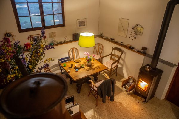 Geheizt werden muss in der Regel nur im Winter und ggf. im Frühjahr und Herbst. Hierfür steht in der Küche ein Kaminofen zur Verfügung, der durch seine Glasscheibe ein gemütliches Ambiente erzeugt. Das Obergeschoss kann ebenfalls mit einem Kaminofen geheizt werden, Holz ist vorrätig. Das Badezimmer ist elektrisch beheizbar. Zusätzlich gibt es für Härtefälle mobile Elektro- und Gasheizungen. Und natürlich die Nähe zum Feuer am offenen Kamin in der Bergerie.